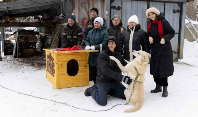 В Екатеринбурге пес Гриша из дендрария получил теплую будку от школьников