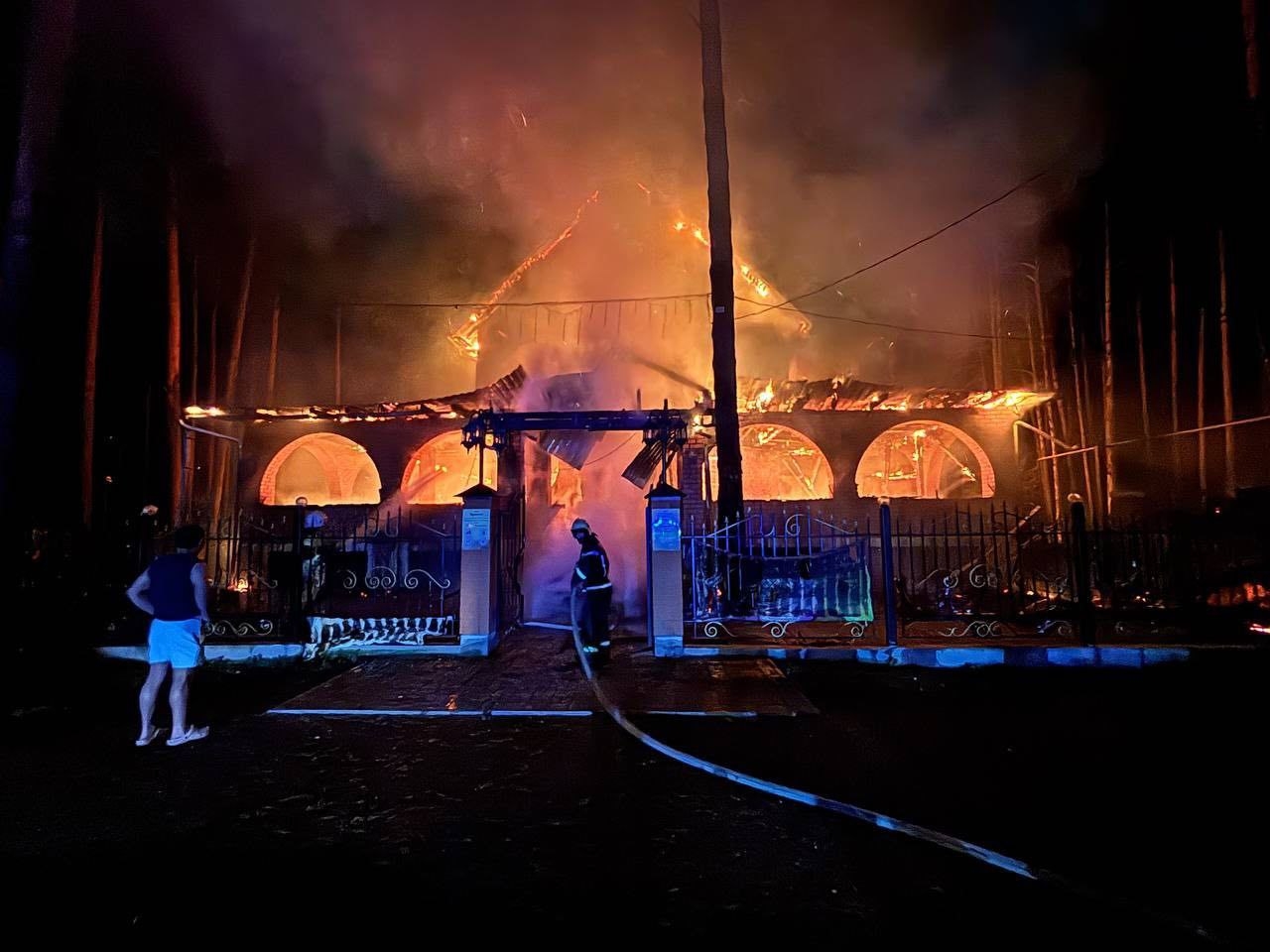 Пожар полностью уничтожил крышу здания, а также серьезно повредил внутреннее убранство, мебель и кухонное оборудование на обоих этажах заведения. Пламя быстро распространялось, создавая реальную угрозу для близлежащих строений.
