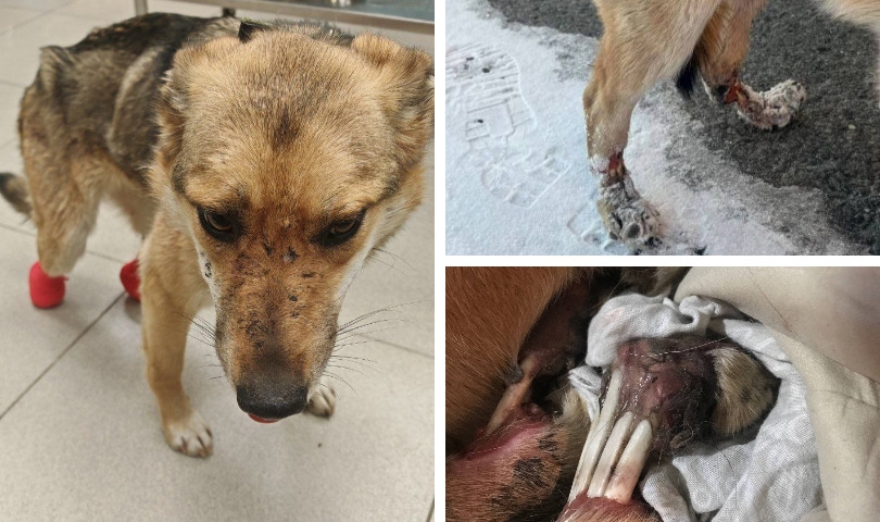 Кнопу нашли в плачевном состоянии – запущенная травма привела к необратимым последствиям. В клинике сделали операцию, сейчас собака в стационаре под наблюдением. Хирург обнадежил: культи получились хорошие, швы заживают. Впереди реабилитация и протезирование.