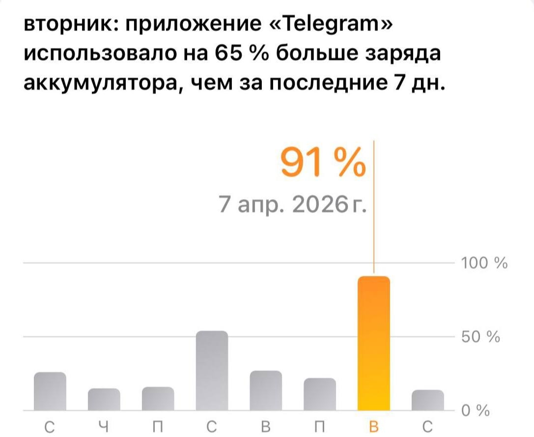 РОССИЯ - Российские пользователи Telegram заметили, что смартфоны стали стремительно разряжаться. Мессенджер перегревает устройства из-за активной фоновой работы при плохом сигнале. Некоторые жалуются: за полчаса уходит до трети заряда.