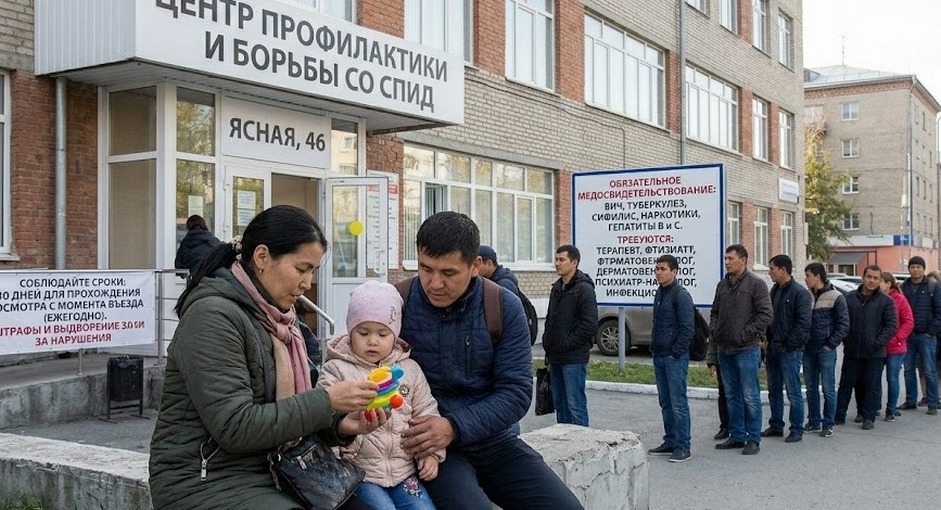 ЕКАТЕРИНБУРГ - Очереди из мигрантов с детьми выстроились у областного центра профилактики и борьбы со СПИД на улице Ясной, 46. Причина — жёсткие требования нового законодательства об обязательном медосвидетельствовании.