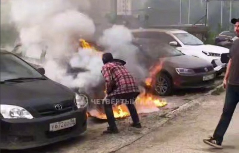Утро жителей улицы Крестинского в Екатеринбурге началось с внезапного и неприятного происшествия: во дворе их дома вспыхнул автомобиль. Вместо привычного запаха кофе в воздухе повис едкий дым, а тишину нарушили тревожные крики.