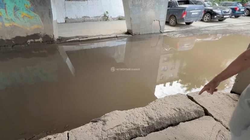 Во дворе многоквартирного дома на улице Восточной в Екатеринбурге образовалось зловонное «озеро» из канализационных стоков.